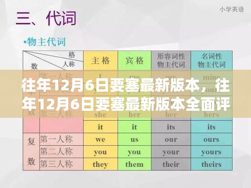 随着科技的不断发展,软件与游戏的更新迭代日新月异,我们将聚焦于“往年12月6日要塞最新版本”进行全面评测与介绍,为各位读者提供详尽的产品特性、使用体验、竞品对比以及优缺点分析,并对目标用户群体进行深入探讨。