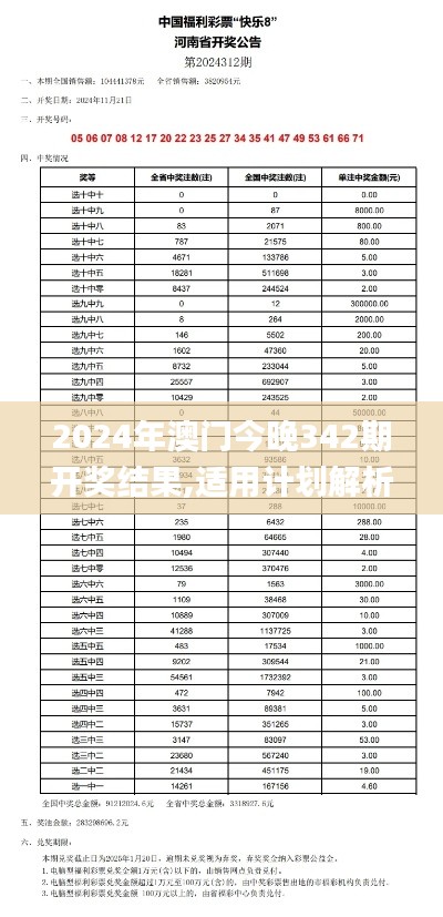 <p>为了更全面地分析“2024年澳门今晚342期开奖结果”,我们首先需要收集和整理相关数据,这不仅关注单一的开奖结果,更要结合历史数据,在更广阔的背景中进行评估,通过趋势分析、号码统计等方法,我们能够更好地理解当前开奖结果与历史数据的关联性。</p>