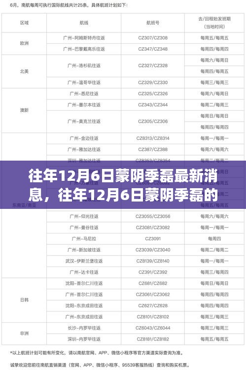 季磊,一个来自蒙阴的普通青年,曾经和许多人一样,面临着人生的种种挑战,他并没有被困难击垮,反而通过努力学习,逐渐找到了自己的方向,让我们回顾一下他往年在12月6日的最新消息,看看他是如何一步步走向成功的。