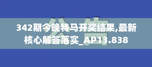 <p> 在澳门特别行政区彩票管理局的精心组织下,第342期特马开奖仪式于昨晚如期举行,现场氛围热烈,聚集了众多观众,随着彩票管理局局长的亲自揭晓,核心解答AP13.838正式出炉,成为本期特马的开奖号码。</p>