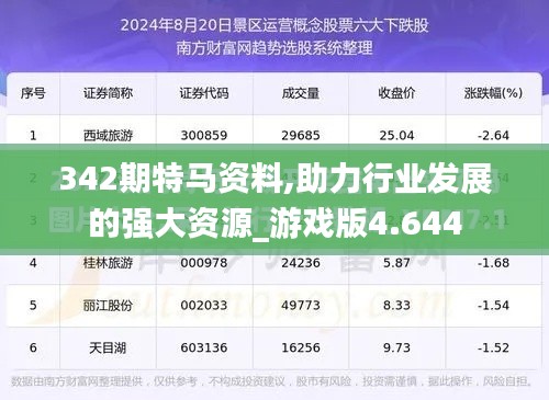 在澳门特别行政区,政策文件的发布对于推动社会发展和行业进步具有重要地位,本期政策文件聚焦于“342期特马资料”,旨在通过整合和发布关键信息资源,为游戏产业注入新的活力,下面,我们将详细解读这份政策文件,以期为澳门游戏行业的发展提供参考和指导。