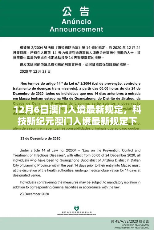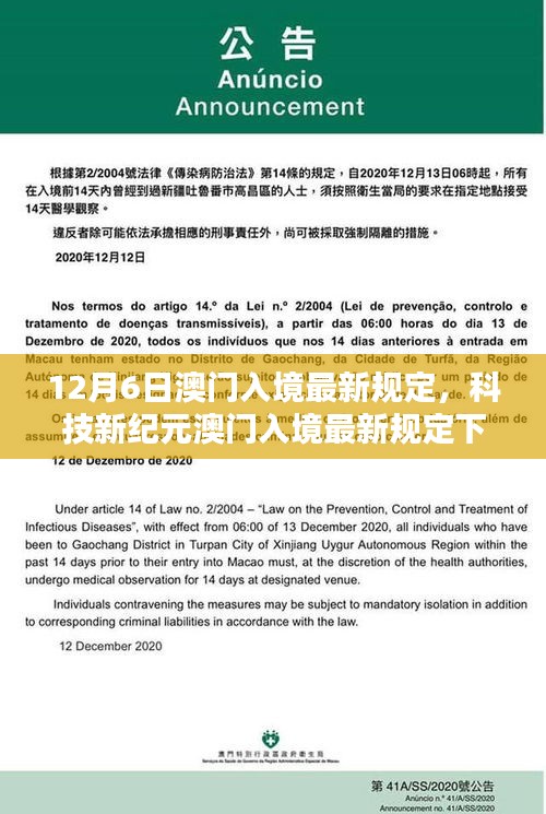 随着12月6日澳门入境最新规定的实施,我们迎来了高科技产品的全新升级,这款产品不仅完全符合最新的入境规定,更是凭借其尖端的技术和人性化的设计,成为了科技领域的璀璨新星,无论是智能识别、安全防护还是便捷生活,它都展现出了无可比拟的优势。