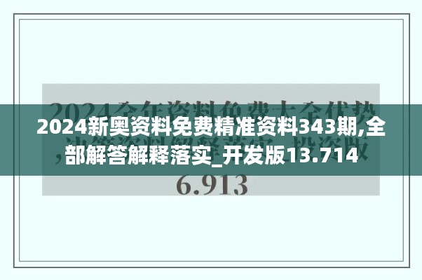 随着2024年澳门新奥运资料免费精准资料343期的推出,标志着 澳门在奥运领域的发展取得了长足进步。这份资料旨在为澳门特区政府及市民提供最新、最全面的奥运资讯和政策解读,并且以免费的形式提供,体现了澳门特区政府对体育事业的重视和对公众信息透明度的提高。开发版13.714版本带给 澳门市民更多的期待,下面将详细进行解读和解释,落实澳门政策的所有细节。