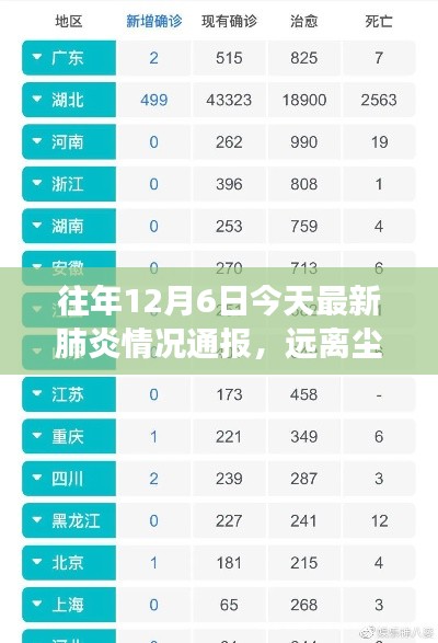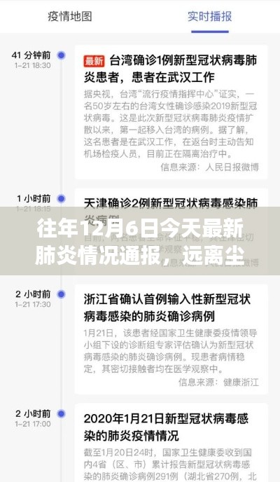 在这个特殊的往年十二月六日里让我们一起放下手中的忙碌踏上寻找内心平静的旅程吧!让我们一起远离尘嚣探索自然美景感受大自然的美丽和力量!同时不要忘记关注最新的肺炎情况通报让我们一起为更美好的明天努力!