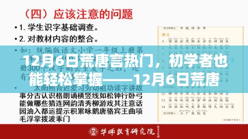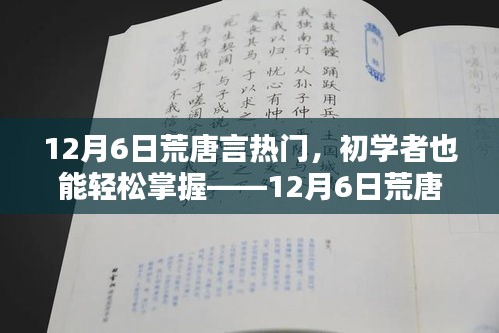 亲爱的读者朋友们,今天我们将一起探讨如何在12月6日完成一项充满挑战的任务——“荒唐言热门”,无论您是初学者还是进阶用户,本篇文章都将为您提供详细的步骤指南,帮助您轻松完成任务或学习新技能。