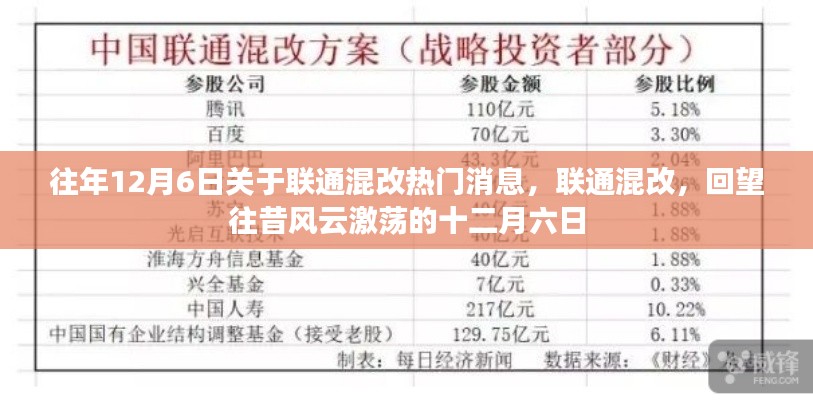 岁月如梭,时光荏苒,在每年的十二月六日,联通混改这一话题总能引起市场的广泛关注,让我们一同回顾这一事件背后的背景、重大事件、影响及其在特定时代中的地位。