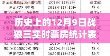 在华夏电影史上,有一部传奇作品以其震撼的视听效果和深刻的社会内涵,成为了无数观众心中的经典之作,这部作品便是《战狼三》,而每年的十二月九日,对于这部影片的影迷而言,都是一个值得纪念的日子,这一天,《战狼三》以其惊人的票房成绩,再次证明了其在电影界的不可替代的地位,本文将通过回顾这一天的实时票房统计,带领读者走进《战狼三》的世界,探寻其背后的故事、重要事件、影响以及在特定领域或时代中的地位。