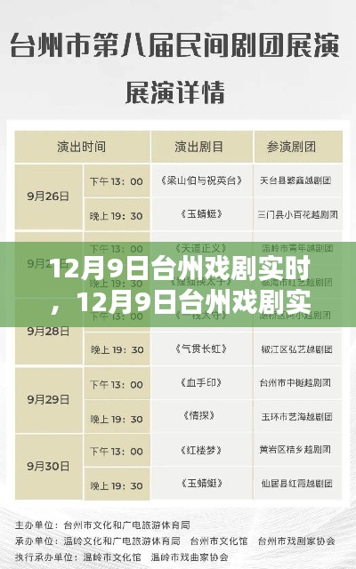 1、剧目选取:12月9日台州戏剧实时在剧目选择上兼具传统与现代,涵盖了经典剧目和新创作品,满足不同年龄层次观众的审美需求。