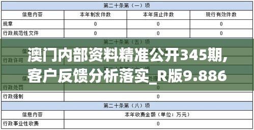 在澳门特别行政区的发展进程中,政策文件的透明度和信息公开对于维护公众利益、提升行政效率具有至关重要的作用,本期“澳门内部资料精准公开345期”(以下简称“R版9.886”)旨在向公众提供最新的政策资料和官方反馈,确保信息的准确性和及时性,通过综合客户反馈,我们提出具体建议和改进措施,以促进澳门政策的落地实施。
