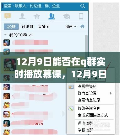 随着科技的飞速发展,学习方式也在不断地变革,我们迎来了一个令人振奋的消息——12月9日,我们将实现在Q群实时播放慕课的美好愿景,这是一个充满机遇与挑战的时代,我们不能停滞不前,而要让学习成为我们自信的源泉,成就感的催化剂,让我们一起迎接这场知识的盛宴,让学习之光照亮我们的前行之路!