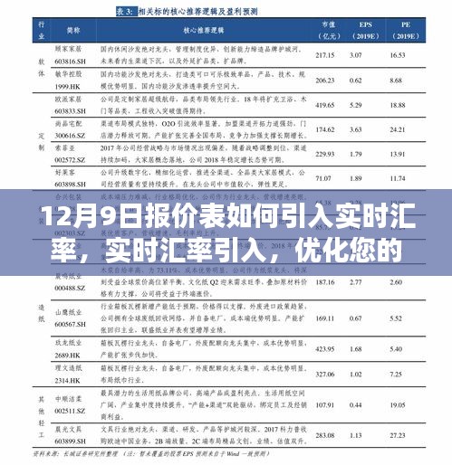 亲爱的读者朋友们,随着全球化的步伐加快,商业活动中的报价环节变得越来越重要,特别是在当前金融市场的快速波动下,确保报价表的准确性及实时性已成为企业运营的关键环节,本文将重点讨论如何将实时汇率引入您的报价表,特别是在当前日期——十二月九日的应用场景,我们将围绕以下三个要点展开讨论:实时汇率的重要性、引入实时汇率的技术手段以及实际操作中的注意事项。