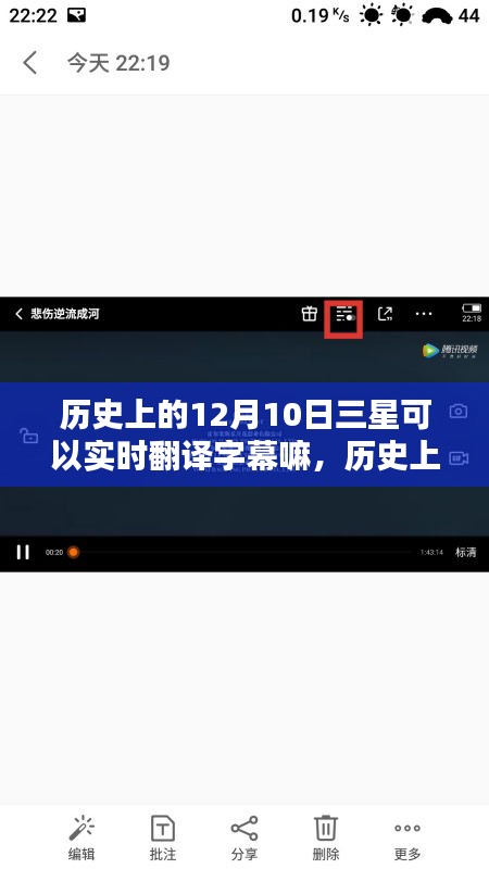 十二月十日,历史见证了三星在实时翻译字幕技术方面的重大突破,这一天,三星在全球范围内发布了其全新的实时翻译字幕技术,该技术能够实时识别并翻译视频中的语音内容,将翻译后的文字以字幕的形式呈现在屏幕上,为用户提供了更加便捷的跨语言沟通方式。