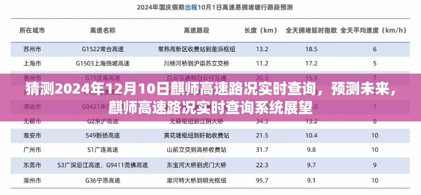 随着科技的飞速发展和交通网络的日益完善,我们对于路况信息的获取需求也日益增长,本文将围绕“猜测2024年12月10日麒师高速路况实时查询”这一主题,探讨未来的交通信息发展,并展望麒师高速的路况实时查询系统。