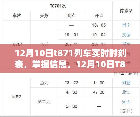 本指南旨在帮助读者顺利查询到T871列车在指定日期(12月10日)的实时时刻表信息,以便合理安排出行计划。