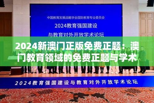 澳门,作为中国的特别行政区,向来在教育领域扮演着重要角色。近年来,澳门教育领域的发展态势显示出新的特点和升级的需要。2024年,澳门教育局正式启动了"2024新澳门正版免费正题:澳门教育领域的免费正题与学术创新"政策。这一政策的推出预示着澳门教育领域将迎来一次全新的升级,通过推广正版教育资源、免费公共教育项目和学术创新,旨在提升澳门的教育质量和打造国际化的教育环境。
