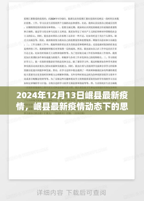 随着全球疫情形势的不断变化,岷县在即将到来的2024年12月13日面临的疫情挑战也愈发引人关注,本文将围绕这一时间点的岷县最新疫情展开论述,从不同角度审视疫情发展的现状和影响,并阐述个人立场与观点。