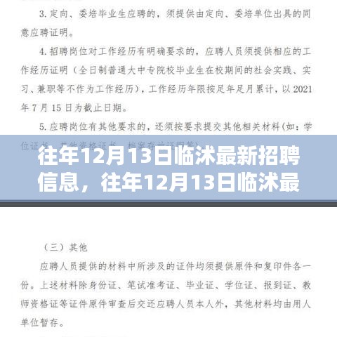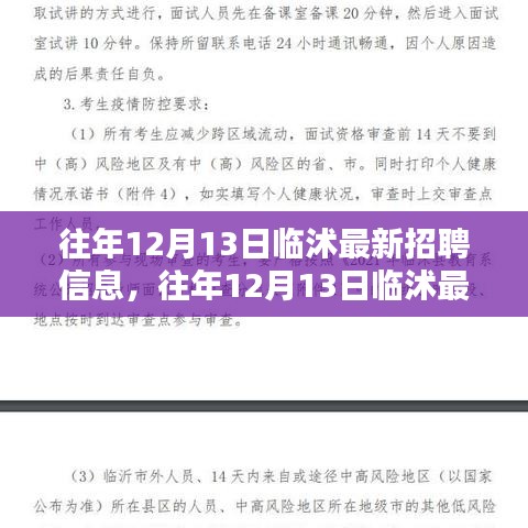 随着冬季的到来,每年的12月13日,临沭地区总会发布一系列的最新招聘信息,本文将围绕这一主题,对往年在这一天发布的招聘信息进行汇总与分析,帮助求职者了解当地的就业市场趋势,为求职之路提供有力的参考。