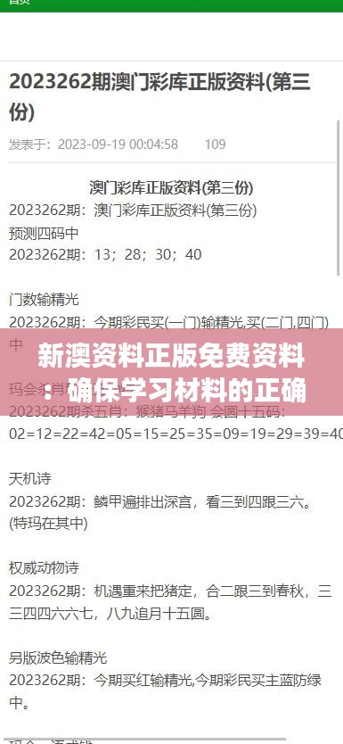 随着互联网的普及,学习资料的获取变得异常便捷,但随之而来的是盗版、不准确学习资料的泛滥问题,对于澳门地区的学生和研究者来说,确保学习材料的正确性和可靠性至关重要,新澳资料致力于提供正版、免费的学习资源,为澳门及全球用户带来知识的福音。