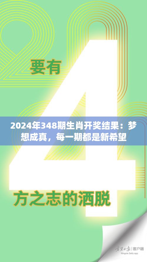 转载请注明来自河南双峰网袋厂,本文标题:《2024年348期生肖开奖结果:梦想成真,每一期都是新希望》