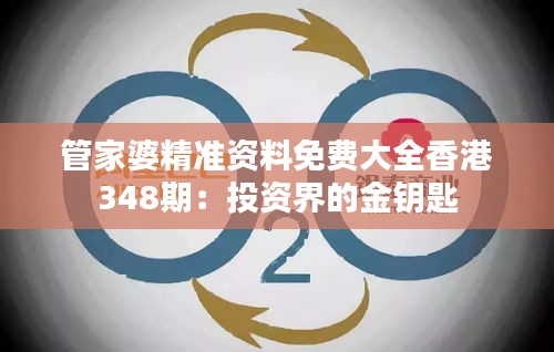 《管家婆精准资料免费大全香港348期:投资界的金钥匙》为投资者提供了全方位的资讯和工具支持,在金融市场的不断变化中这把“金钥匙”助力投资者开启成功之门实现财富增长。