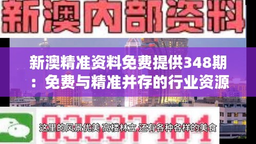 随着信息时代的到来,我们正处于一个数据爆炸的时代,在这样的时代背景下,“新澳精准资料免费提供348期”工程应运而生,这是一个以政府政策为导向,结合市场需求,致力于为用户提供最新、最精准的行业资源服务的澳门政策文件项目,通过该项目,我们期望建立一个连接政策与市场、激活港澳地区发展潜力的互动平台,激发市场主体活力,推动澳门经济转型和升级。
