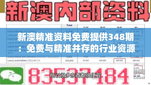 “新澳精准资料免费提供348期”是澳门特区政府支持的一项创新服务举措,该项目旨在免费向社会各界提供经过专业整理和分析的精准行业资料,该项目的服务特色在于“免费与精准并存”,不仅为用户提供无门槛的免费服务,而且所提供的信息严格经过研究调查,具备高价值的精准行业资料。