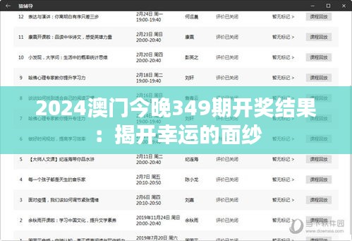 随着最后一个球的落下,今晚349期的开奖结果揭晓,彩民们的心情随之起伏,有的欢呼雀跃,有的感叹不已,揭开幸运的面纱,对于中奖者来说是一次命运的馈赠;对于未中奖者而言,则是下一次挑战的起点。