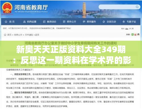 <p> 新奥天天正版资料大全第349期作为学术界一项重要的参考资料,自发布以来受到广泛关注与讨论,本文旨在全面剖析这一期资料在学术界的深刻影响,探讨其背后的原因,并展望其未来的发展方向。</p>