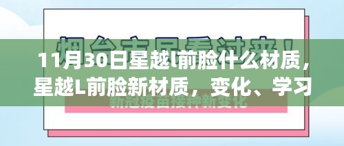 在生活的舞台上,我们每个人都是自己命运的导演,我们将目光投向一款名为星越L的车型,特别是其前脸的新材质,它不仅代表着科技与设计的融合,更象征着变化、学习与自信的力量,当我们谈论到“11月30日星越L前脸什么材质”时,其实质背后蕴含着一种励志精神,激励我们不断前行,拥抱变化,用学习铸就自信与成就。
