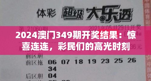 在万众瞩目中,2024年澳门第349期彩票开奖活动盛大举行,彩民们怀着激动和期待的心情,共同见证这一精彩纷呈的彩票盛宴,澳门彩票始终坚守公平公正和公开透明的原则,为彩民们营造一个优良的彩票环境,助力澳门公益事业的繁荣发展,本期彩票开奖结果充满惊喜与正能量,为彩民们献上丰富多彩的奖项设置,注入新鲜活力,点亮澳门经济。
