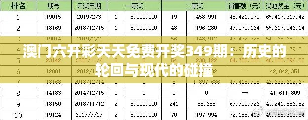 在历史的长河中,澳门是一片多姿多彩的土地。这里拥有丰富的历史文化名胜,同时也在不断地随着现代化的发展焕发着新的生机。今天,我们要探讨的主题是“澳门六开彩天天免费开奖349期:历史的轮回与现代的碰撞”。让我们一同走进这片独特的土地,感受它独特的魅力与挑战。