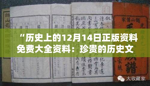 让我们一同回顾历史上的12月14日,那些至关重要、不容错过的事件,这份清单是对“珍贵的历史文化遗产”的一次深入解读,它们共同描绘了一个丰富多彩的历史画卷。