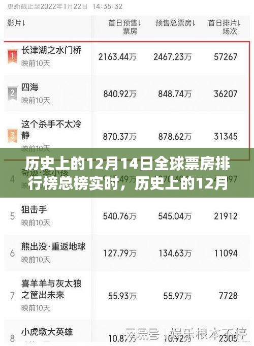 随着电影产业的飞速发展,全球票房排行榜成为了衡量电影成功与否的重要标准之一,每年的特定日期,如12月14日,都会涌现出众多热门电影,竞争激烈的票房排行榜也随之产生,本文将聚焦于历史上的12月14日全球票房排行榜总榜实时,从不同角度探讨其背后的故事与现象,并提出个人立场与观点。