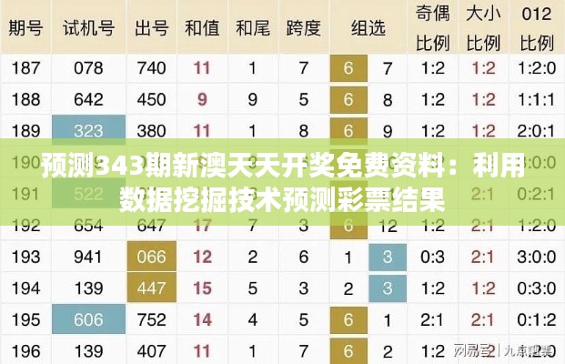 <p>彩票作为一种独特的公众娱乐活动,吸引了无数人的目光和参与,在众多彩票类型中,新澳天天开奖因其高频率的开奖和广泛的参与者群体而独树一帜,随着科技的进步,数据挖掘技术逐渐被应用于彩票预测领域,以期提高中奖概率,本文将深入探讨如何利用数据挖掘技术预测第343期新澳天天开奖的结果,并免费提供相关分析资料。</p>