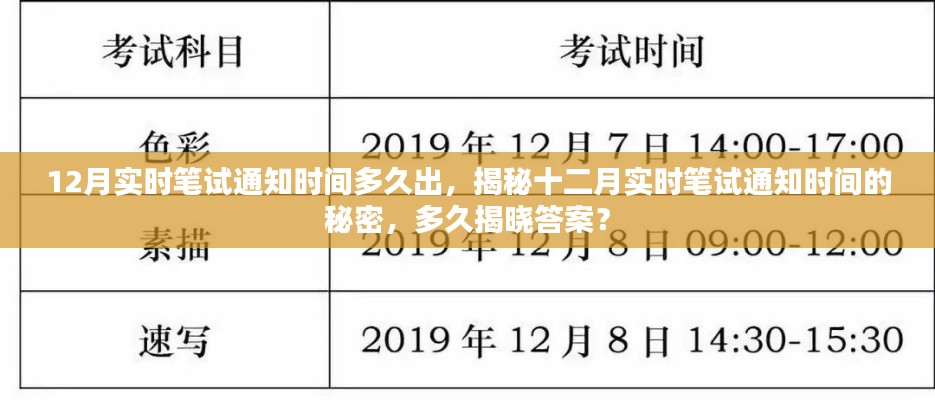随着年终考试的临近,许多学生和职场人士都在密切关注着即将到来的笔试通知,特别是在充满期待的十二月,一场场重要的笔试考试即将拉开帷幕,关于十二月实时笔试通知时间究竟多久出?本文将为您揭晓答案,带您了解笔试通知时间的背后秘密。