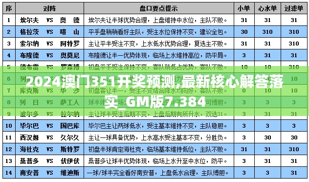 《2024澳门351开奖预测,最新核心解答落实_GM版7.384》是一个全面、系统地剖析澳门博彩业发展趋势和机遇的政策文件,澳门特区政府将以该文件为指导,结合实际情况推进博彩产业布局建设,制定日常管理和发展规划,助力澳门博彩业实现高质量发展。