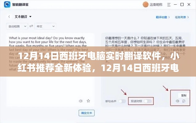 在这个日新月异的科技时代,实时翻译软件已经成为我们生活、工作中不可或缺的工具,我要为大家带来一款备受瞩目的产品——12月14日全新推出的西班牙电脑实时翻译软件,在这篇文章中,我们将一起探讨这款软件的特色功能、使用体验以及可能存在的问题和改进建议,带你领略科技带来的便捷与魅力。