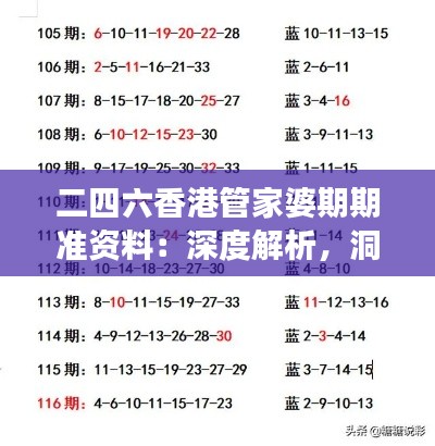 二、深度解析二四六香港管家婆期期准资料的重要性