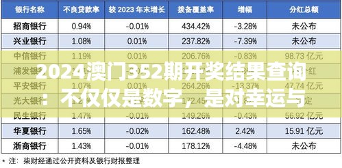 在这个特殊的背景下,"2024澳门352期开奖结果查询:不仅仅是数字,是对幸运与概率的深刻洞察"这篇文章的发表无疑为公众提供了一个全新的视角,澳门,以其博彩业的繁荣而闻名于世,而这篇文章则深入探讨了背后的幸运与概率的深刻联系,通过深入分析这一期开奖结果,我们可以洞察到博彩业背后的复杂性和魅力。