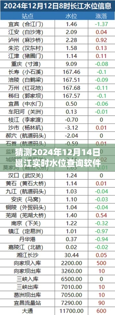 随着科技的快速发展,智能化生活已经成为我们不可或缺的一部分,在这样的时代背景下,对于水位信息的实时查询需求也日益增长,本文将围绕“猜测2024年12月14日邕江实时水位查询软件”这一主题,探讨未来水位查询软件的发展趋势,并展望邕江实时水位查询软件的可能功能与特点。