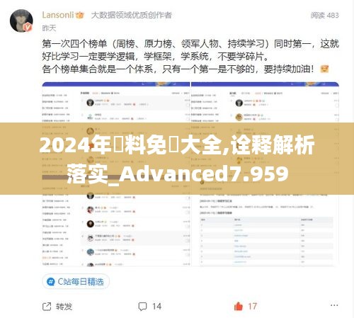 在数字化时代背景下,澳门政府一直致力于推动信息公开和透明度,2024年资料免费大全《诠释解析落实_Advanced7.959》正是面向这一目标的一大成果,该资料大全全面展示了澳门政策的解读与落实,为公民、企业和学术界提供了一个全面的信息资源平台,本文旨在对其核心内容与实际应用进行深度剖析,旨在助力社会各界更好地理解和利用公共政策资源。