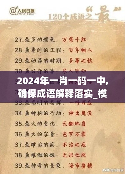 “成语解释落实”是在“一肖一码一中”框架下,对语言文化的规范传播,成语作为传统文化的重要组成部分,承载着深厚的历史和文化内涵,确保成语的正确解释和传播对于文化传承至关重要,通过准确传递成语的深层意义,我们可以增强文化自信,促进社会和谐,提升个体的认知水平和审美情趣。