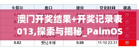 随着技术的发展,PalmOS4.123作为一种先进的操作系统,为用户管理、查询澳门开奖结果及013号彩票开奖记录提供了极大的便利,通过便携式设备如智能手机或平板电脑,用户可以随时随地访问最新的开奖信息和历史记录,其主要特点如下:
