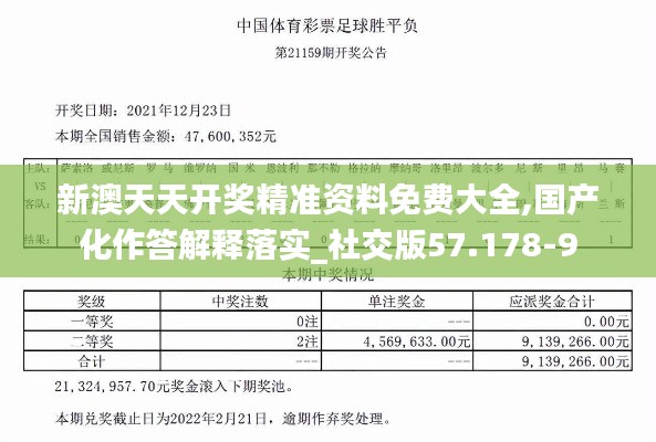 新澳天天开奖精准资料免费大全是一个为彩票爱好者提供全面、精准、及时的彩票开奖信息和投注指南的平台。随着彩票市场的不断壮大,越来越多的人选择通过购买彩票来寻找刺激和梦想。在这种情况下,新澳天天开奖精准资料免费大全应运而生,它提供了包括彩票开奖结果、走势分析、选号技巧等多种功能,帮助用户提高中奖概率,实现财富梦想。下面让我们一起来了解一下新澳天天开奖精准资料免费大全的具体内容。