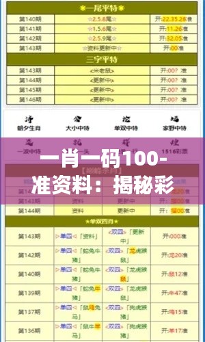 澳门彩票业作为亚洲重要的博彩中心之一,吸引了全球众多玩家的目光。“一肖一码100-准资料”成为彩票预测领域的一个热门话题,我们将深入探讨这一预测方式的高精准度秘诀,为各位朋友带来一些启示。