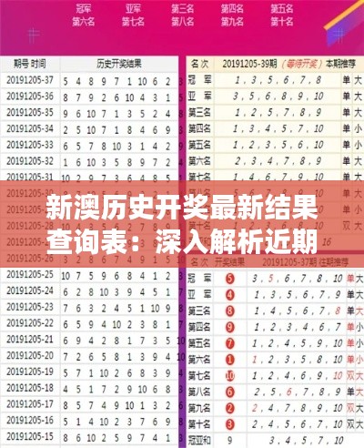 澳门,作为世界著名的赌场和旅游胜地,其彩票市场一直备受关注,每一次的新澳历史开奖都牵动着无数赌客的心弦,本文旨在深入分析新澳历史开奖的最新结果,探索近期的开奖趋势,并对未来的开奖结果做出合理预测。