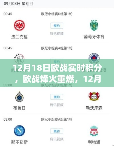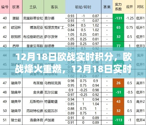 随着冬季的脚步日渐临近,欧洲各大赛事的竞争也进入了白热化阶段,在这样一个充满激情与活力的时刻,我们迎来了一个值得关注的日期——12月18日,这一天,欧洲赛场上的积分榜竞争愈发激烈,实时积分榜上的每一分变化都牵动着无数球迷的心弦,本文将带您一探当日欧战积分榜的概况,重点关注要点、要点二和要点三。
