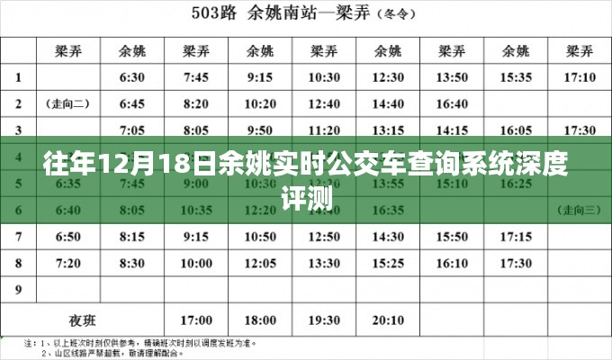 随着智能科技的飞速发展,城市公共交通系统的智能化水平也在不断提升,对于生活在余姚市的广大市民来说,实时掌握公交车动态信息已成为日常出行的刚需,本文将详细介绍往年12月18日余姚实时公交车查询系统,从产品特性、使用体验、竞品对比、优缺点分析以及目标用户群体等方面进行全面评测。