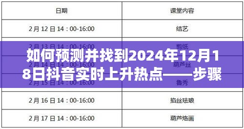 随着互联网的普及和社交媒体的飞速发展,抖音已成为大众获取信息的重要途径之一,对于想要了解抖音实时上升热点的初学者和进阶用户来说,掌握寻找热点的方法和技巧至关重要,本文将指导读者如何预测并找到特定日期(如2024年12月18日)的抖音实时上升热点,帮助大家轻松掌握这项技能。