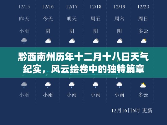黔西南州,这片位于中国贵州省西南部的大地,每到冬季,总是吸引着人们的目光,而每年的十二月十八日,这里的天气总是格外引人关注,这一天,黔西南州的气候多变,既有温暖的冬日阳光,也有寒冷的北风呼啸,甚至偶尔会有雨雪纷飞,这样的天气变化,不仅影响着当地居民的日常生活,更在特定时期留下了深刻的时代印记。